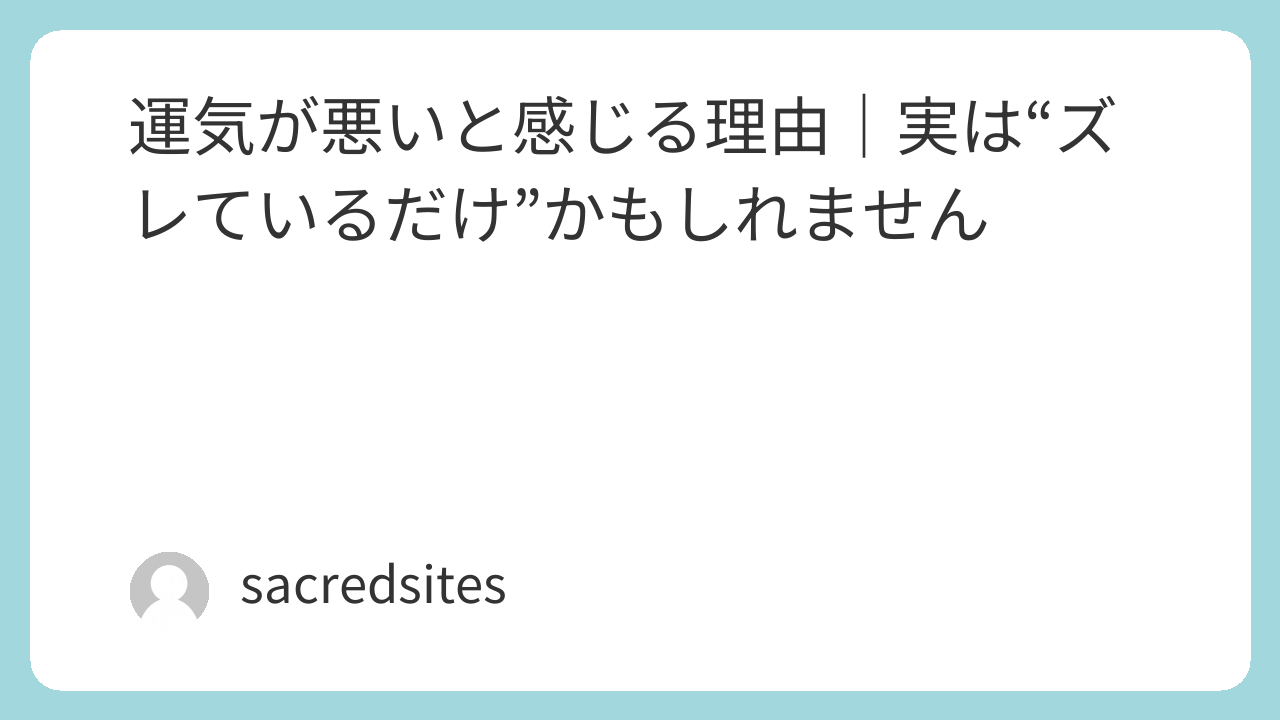 運気が悪いのではなく“ズレている”だけ
